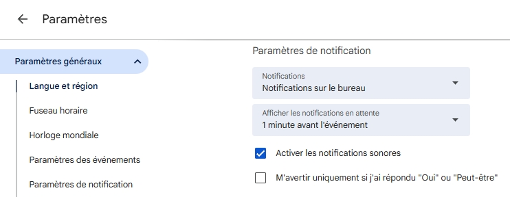 Vous pouvez modifier les préférences de notification de tous vos événements dans Google Agenda.
