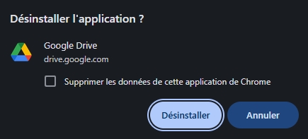 Pour utiliser Google Drive facilement, vous pouvez installer l’application autonome Google Chat dans votre navigateur Chrome qui offre une expérience Drive simplifiée et que vous pouvez ouvrir depuis votre ordinateur.
